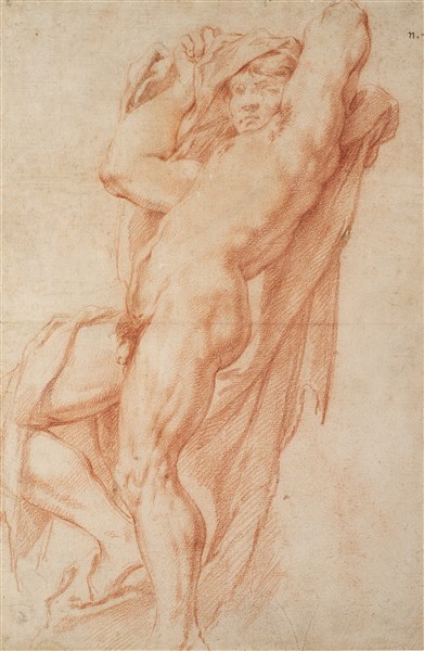 Domenico Maria Canuti (attr.) Studio virile stante Matita rossa su carta, mm 48