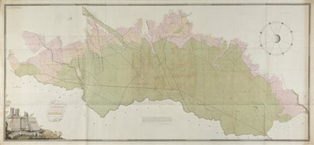 Mappa catastale manoscritta su carta (mm 1850 x 3950), intelata. Ottimo stato di conservazione (minime pieghi e lievi difetti).