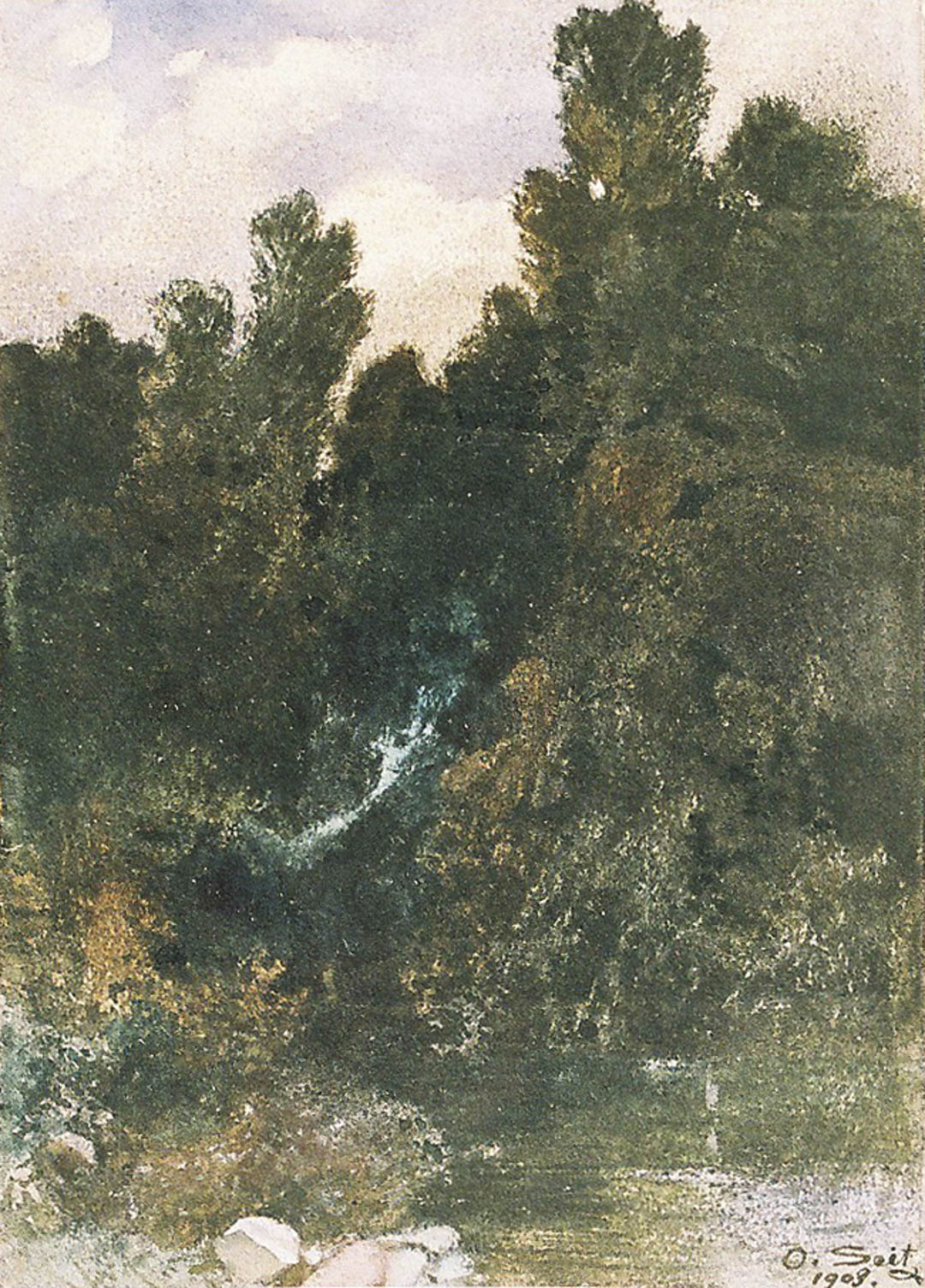 Otto Seitz (München/Monaco di Baviera 1846 – 1912) Cascata, 1903;China, acquerello, 18,8 x 13,3 cm, in cornice