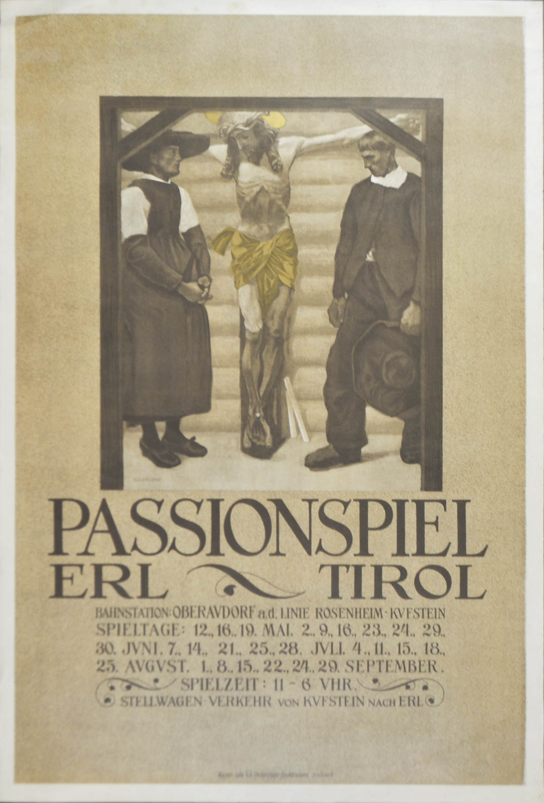 Albin Egger-Lienz (Stribach bei Linz 1868 – St. Justina bei Bozen 1926) Manifesto “Passionsspiel Erl Tirol“, 1910 ca.;Litografia, 95 x 63 cm, gerahmt