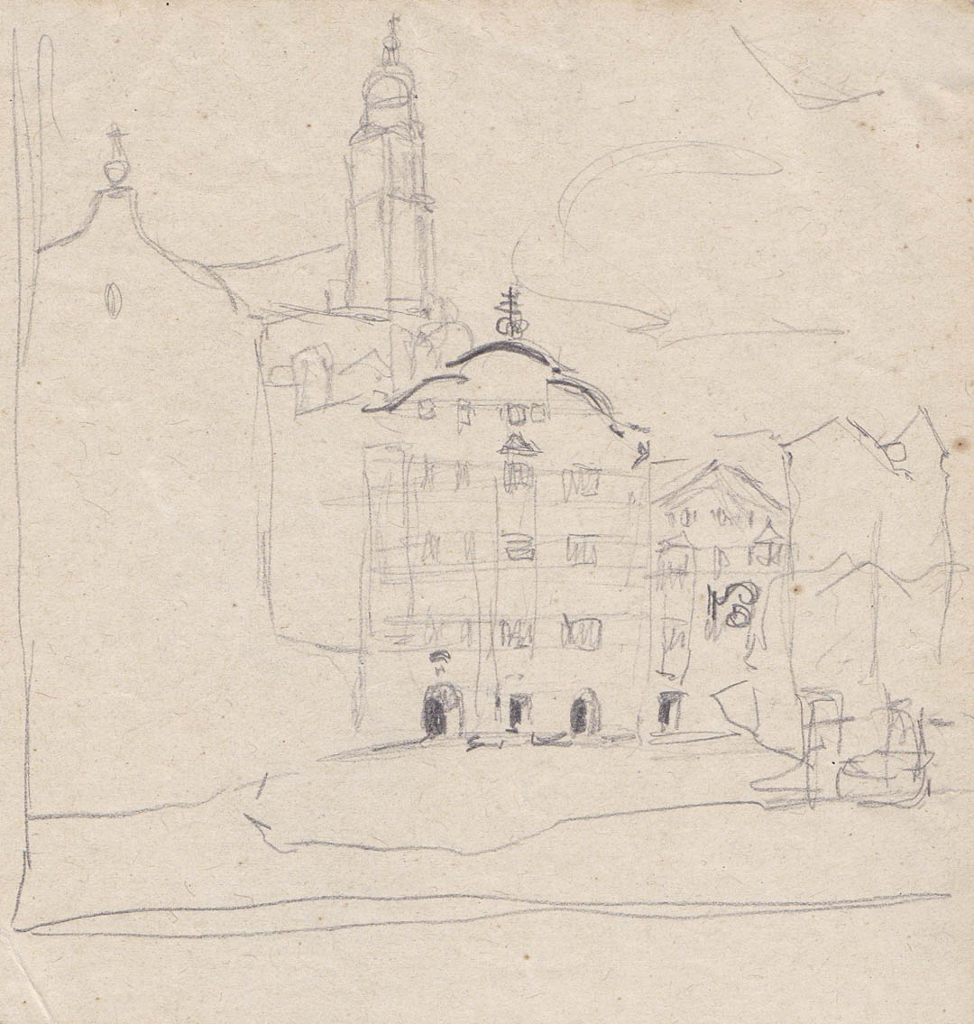 Artur Nikodem (Trient/Trento 1870 – Innsbruck 1940) Hall in Tirolo, 1910/20 ca.;Matita, 12,5 x 11,7 cm