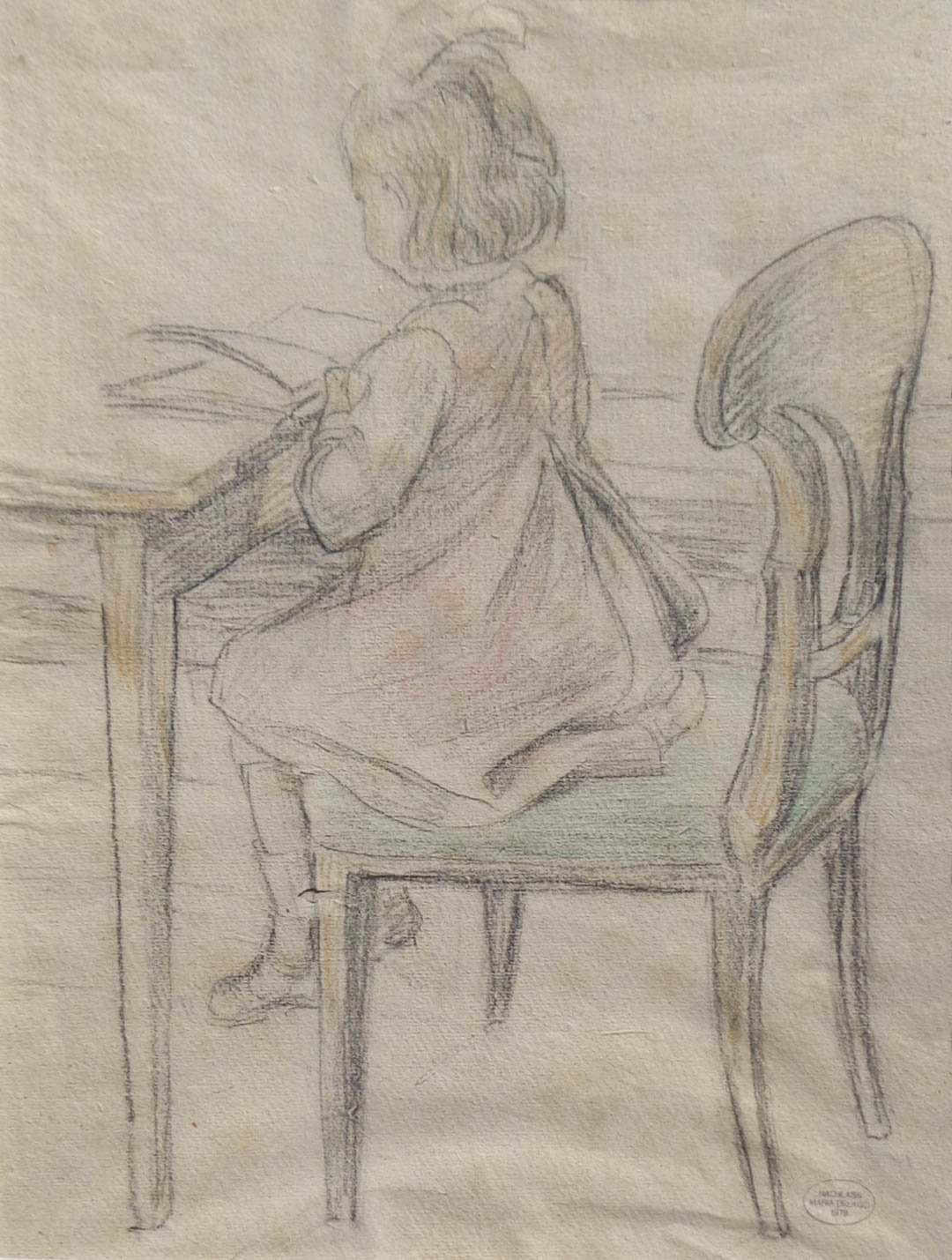 Maria Delago (St. Leonhard/S. Leonardo 1902 – Brixen/Bressanone 1979) Ragazza che legge;Gessetto e gessetti colorati, 39,5 x 29,5 cm,