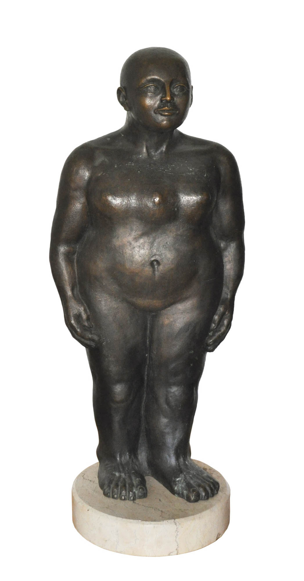 Bronzo, altezza 95 cm, lastra di granito altezza 8 cm, diametro 34 cm