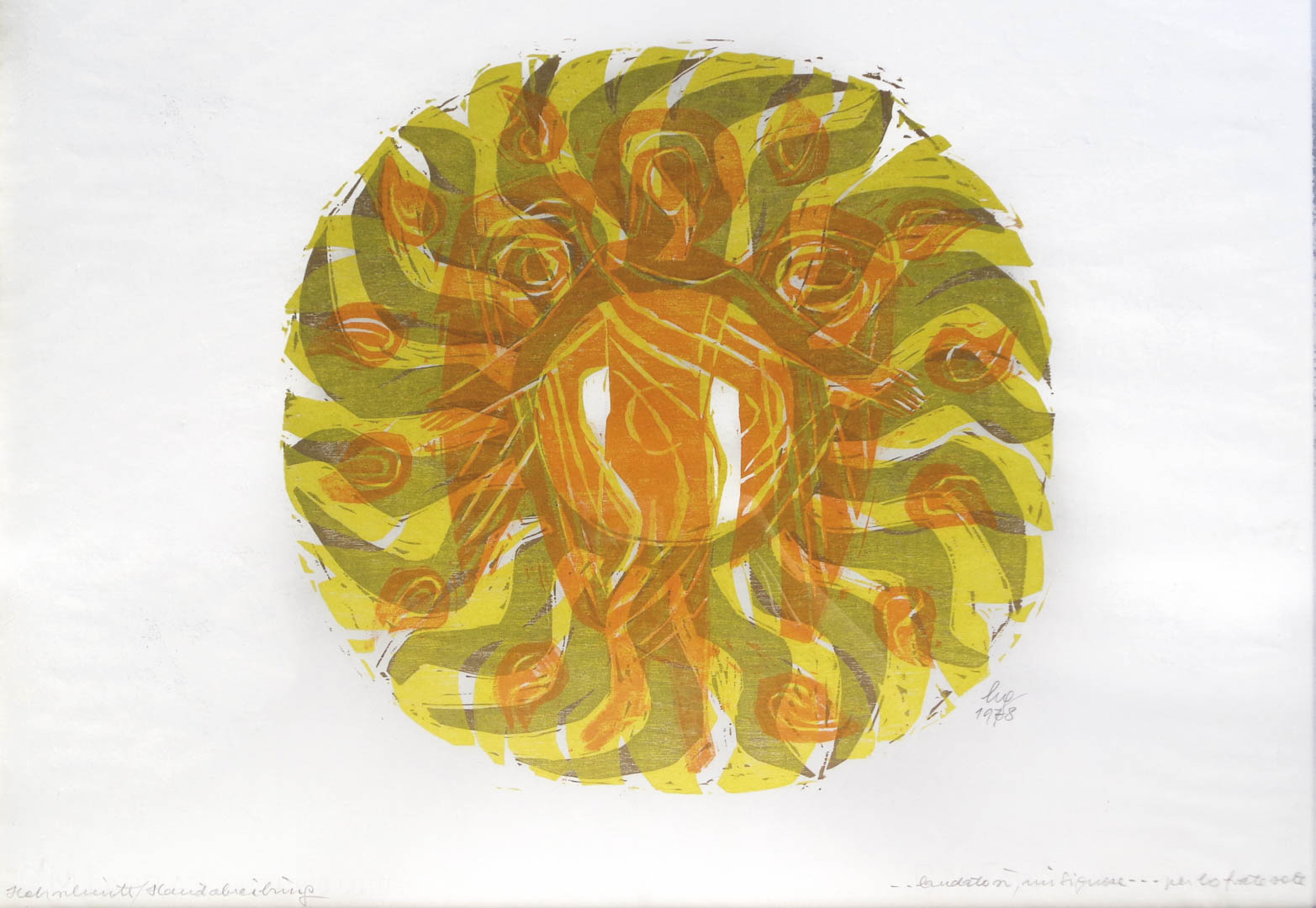 Heiner Gschwendt (Bozen/Bolzano 1914 – Klausen/Chiusa 2011) Ruota planetaria, 1978;Xilografia a col., 47 x 65 cm