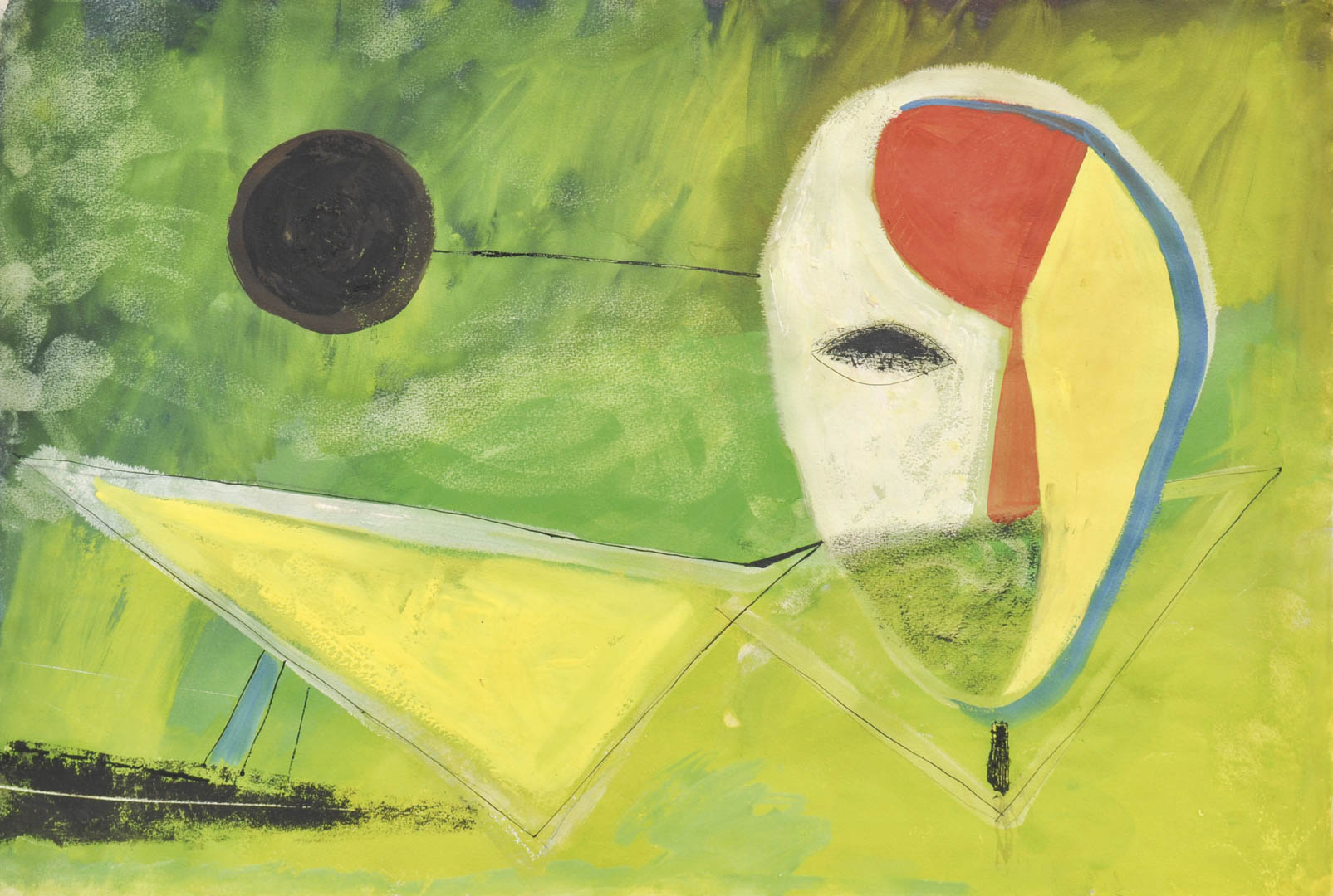 Hans Ebensperger (Prad am Stilfserjoch/Prato allo Stelvio 1929 - 1971 Viso davanti a sole nero;Tempera e china su carta, 36,7 x 54