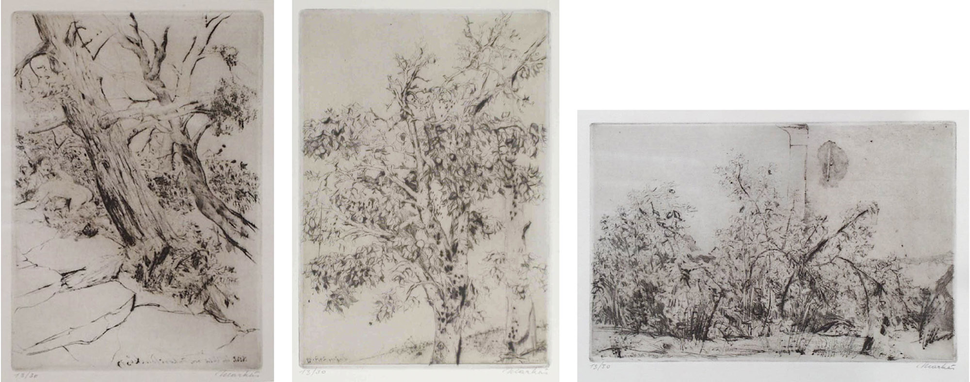 Markus Vallazza (St. Ulrich in Gröden/Ortisei 1936 – Bozen/Bolzano 2019) Alberi;Convoluto di 7 acqueforti, 27 x 19 cm ciascuna