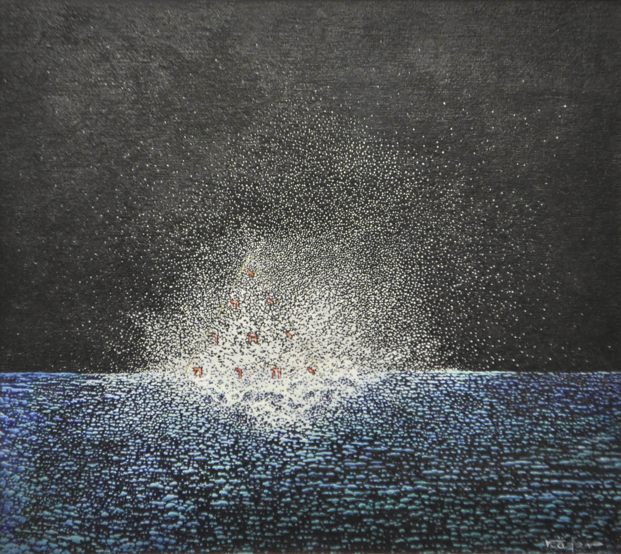 Karl Käfer (* Salzburg/Salisburgo 1947) Genesis 1, 2;Acrilico su tela, 40 x 45 cm
