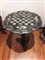 TAVOLINO FRANCESE in legno ebanizzato con intarsi a scacchiera in madreperla, piano ribaltabile, misure cm 55x57x70 H.