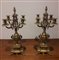 COPPIA DI CANDELIERI di provenienza francese, realizzati in bronzo dorato con quattro fiamme. Diametro cm. 27x56 H.