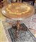 TAVOLINO realizzato in radica di noce di forma tonda, stile olandese, intarsiato in bosso. Dimensioni cm 55x73 H.
