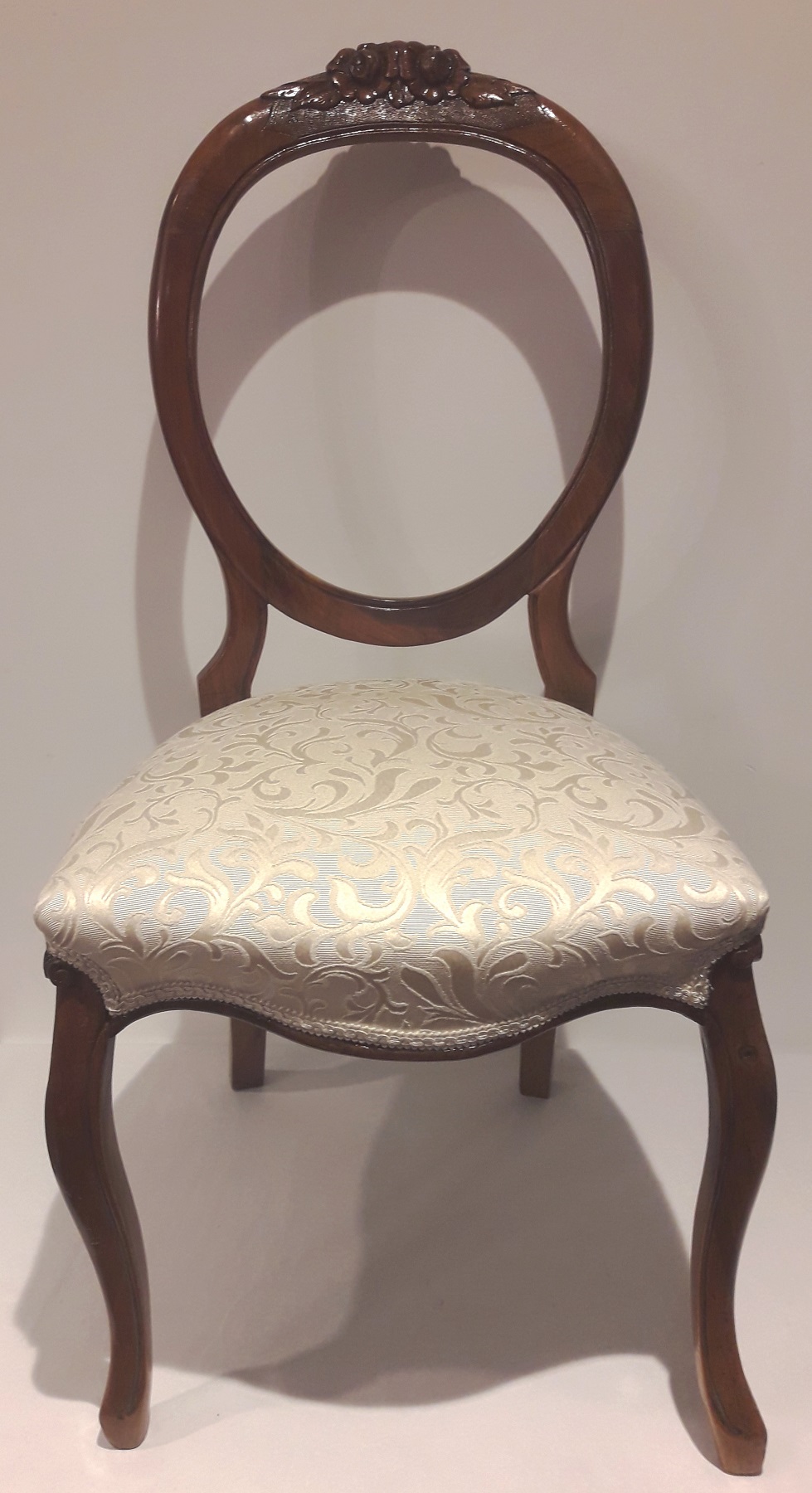 SET 4 SEDIE in stile italiano, realizzate in noce intagliato. Dimensioni seduta cm 42x42, spalliera cm 80 H.
