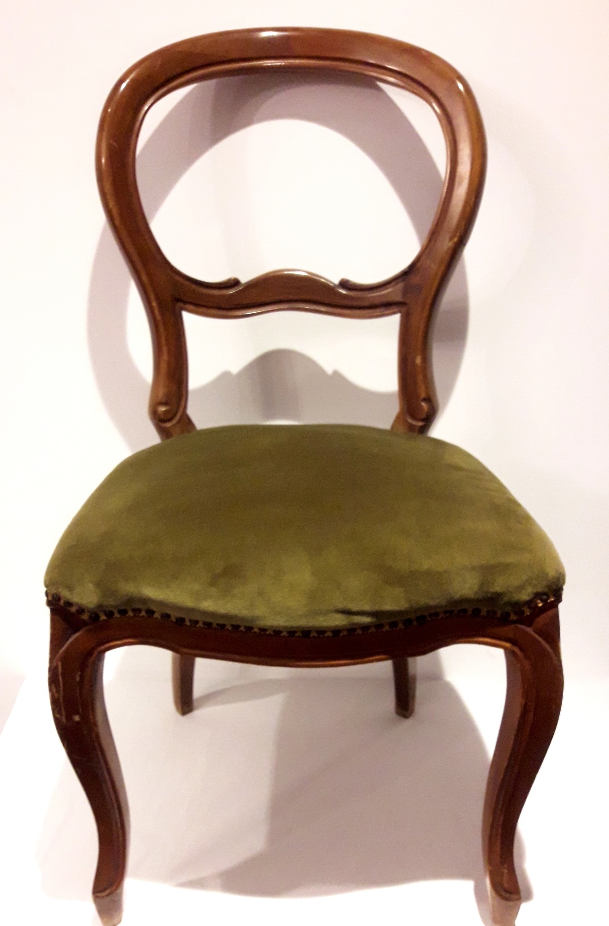 6 chairs made of walnut, Italian style, dating back to the late 800s. Seat size 50x50 cm, shoulder pad 96 H.