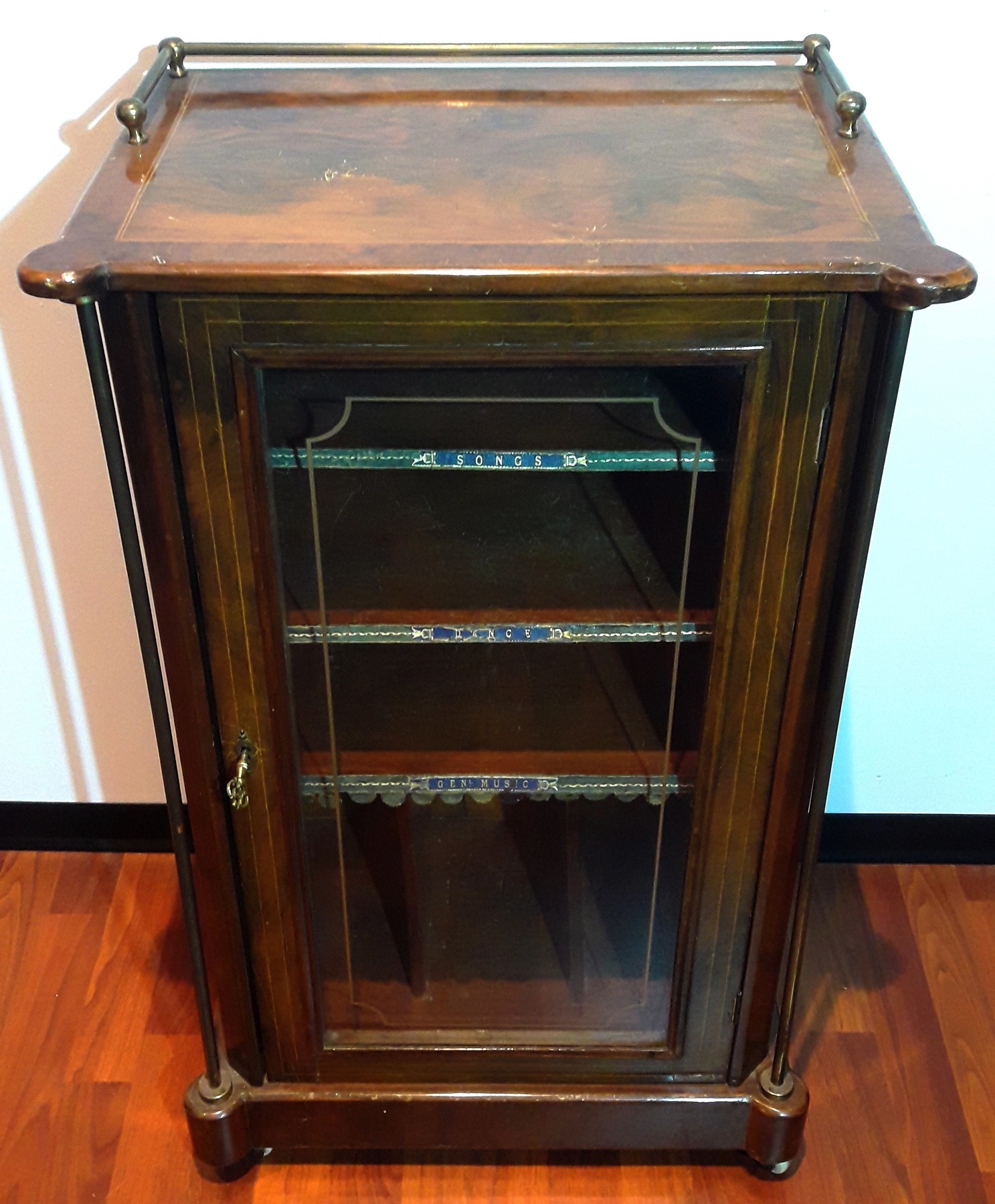 PORTA GRAMMOFONO realizzato in radica di noce, in stile inglese, finiture in ottone. Dimensioni cm 53x35x90 H.