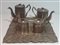SET SERVIZIO 4 pezzi, realizzato in Sheffield inglese, composto da vassoio cm 38x38, caraffa cm 24x17, caraffa cm 25x14, piu’ lattiera cm 16x12, e zuccheriera 12x12.