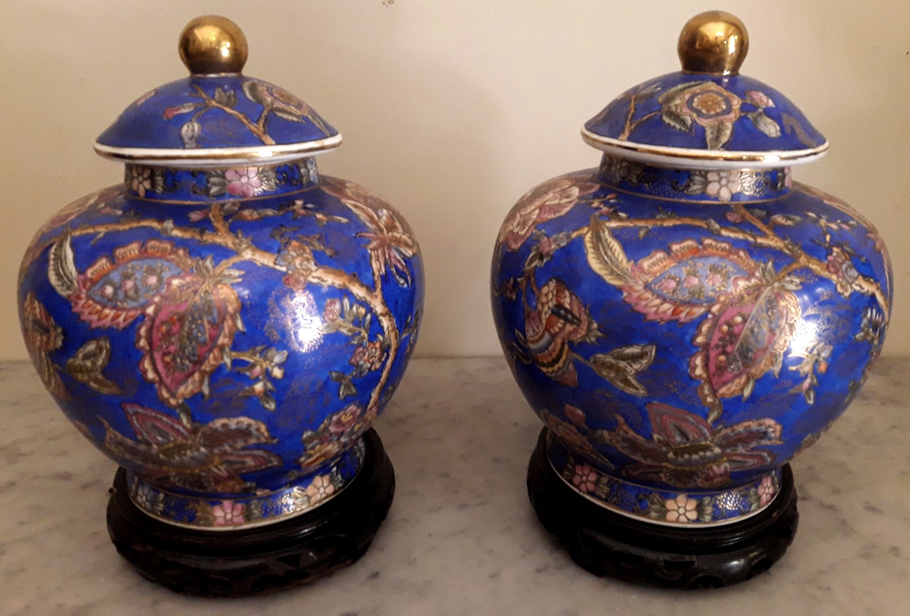 COPPIA DI POTISHE orientali, realizzate in porcellana con decori floreali.