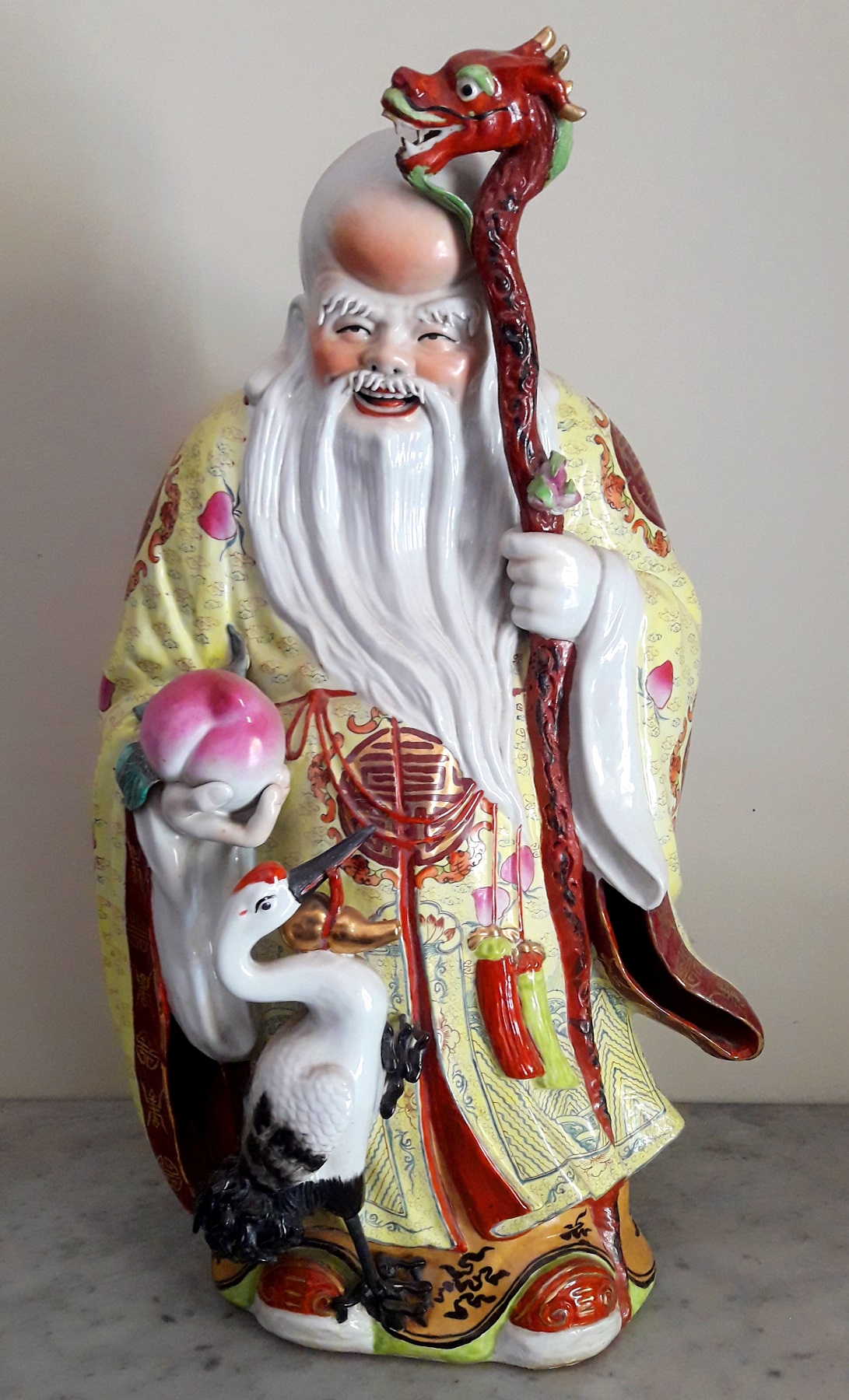 made of Chinese porcelain, representing Eastern deities. Under the base are stamps and signature. Work of the first half of the 900. size cm 44x23x75 H.