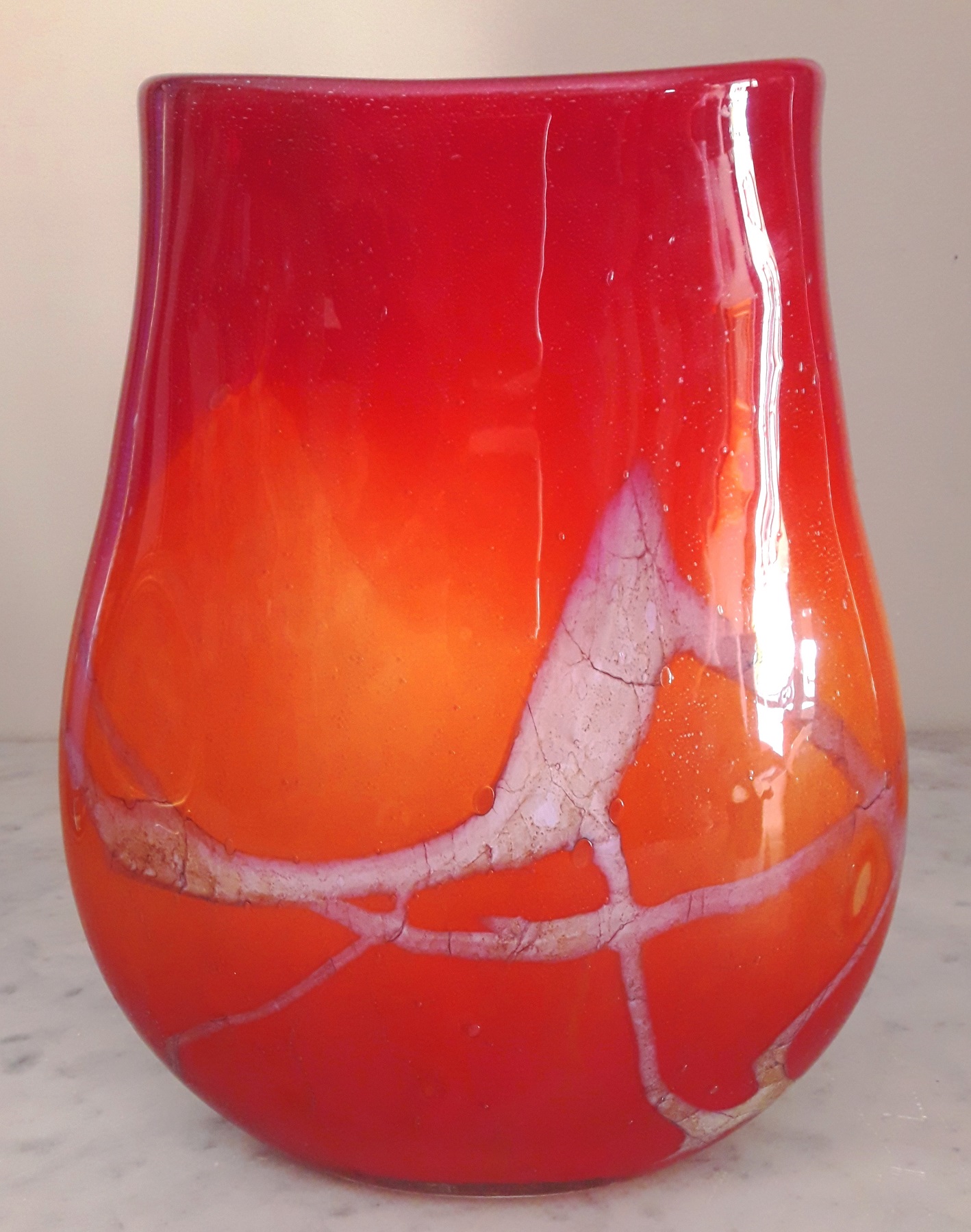 made of wall glass, red in color, dated around 1965, Barovier creation. Cm size 23x8x29 H.