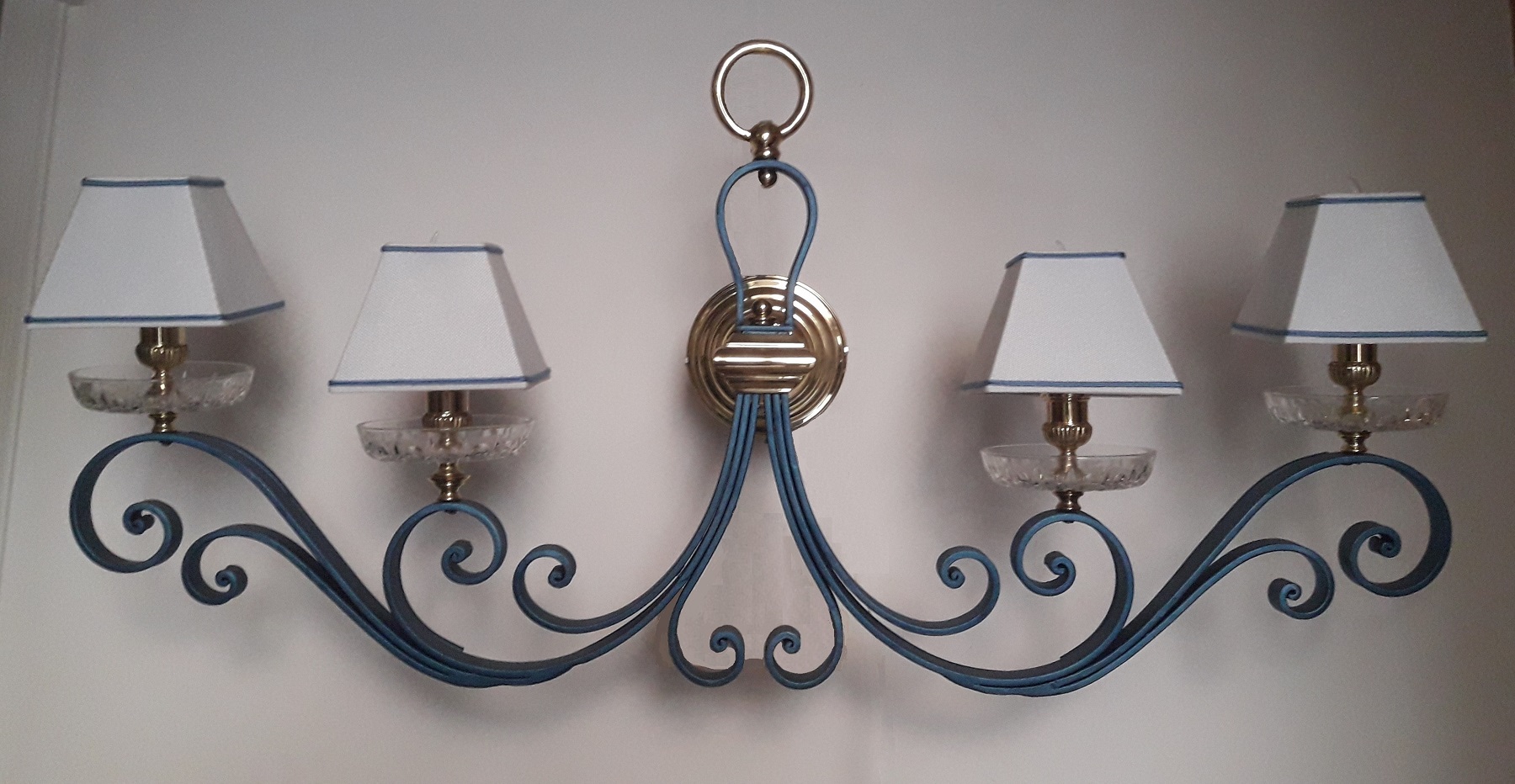 APPLIQUE realizzato in metallo forgiato, di fattura Toscana a 4 luci. Dimensioni cm 110x52 H.