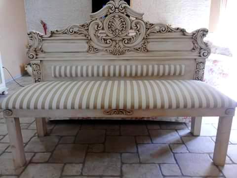 made of pickled wood, recently manufactured by hand. Carpeted with cotton fabric. Centimeter size 177x64x134 H.
