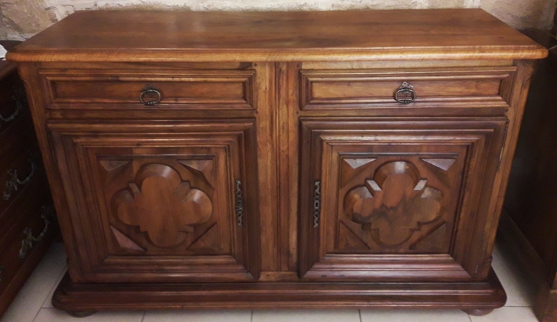 made of walnut in the second half of the 800. It has 2 drawers and two fronts with an internal shelf and swallowtail joints. Key lock, wrought-iron outer hinges and tapping pious on the doors. All the finishes are made of brass. Centimeter size 53x170x103 H.