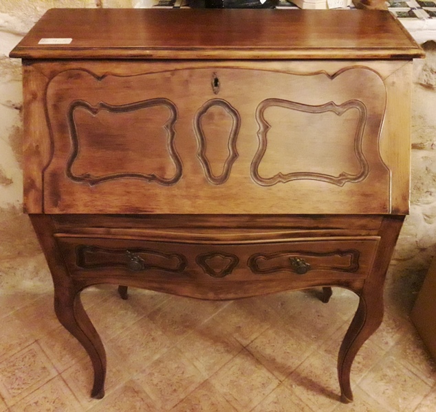 RIBALTINA realizzata in noce inizio XX secolo (1910 /20). Presenta 4 cassettini all’interno più uno esterno. Dimensioni chiusa cm 39x72x92 H, aperta cm 63x72x92 H.
