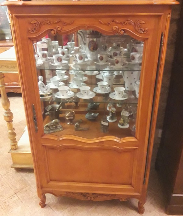 VETRINA in stile “Luigi XVI”, proveniente dal sud della Francia. Realizzata in noce biondo, scorniciata e scantonata. Presenta un’unica anta metà in vetro, all’interno una base più 2 ripiani anch’essi in vetro. Dimensioni cm 64x95x160 H.
