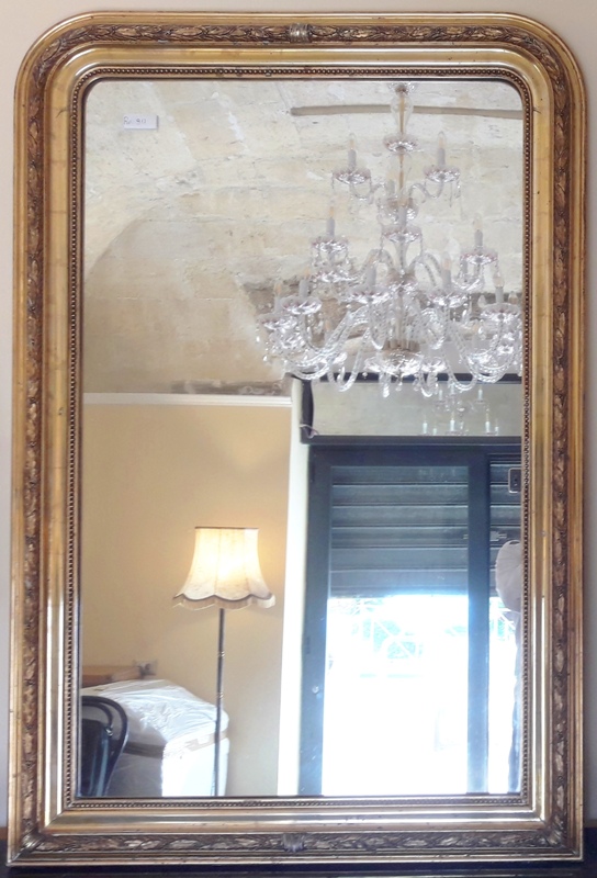 SPECCHIO in stile “Luigi Filippo”, risalente alla seconda metà ‘800. Finiture in foglia oro. Dimensioni cm 92x135 H.