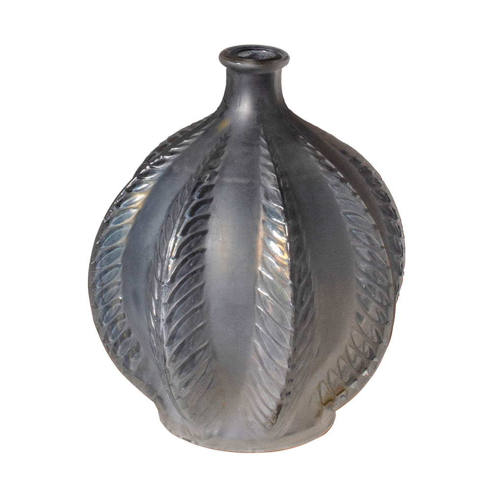 RENE' LALIQUE - Vaso “Malines” detto anche “Feuilles pointues” in vetro opalescente soffiato a stampo e satinato, modello n. 957 creato nel 1924 e non ripreso dopo il 1947; l’esemplare è databile prima del 1945, anno di morte di Renè Lalique, in quanto nella firma è ancora presente la lettera R.
