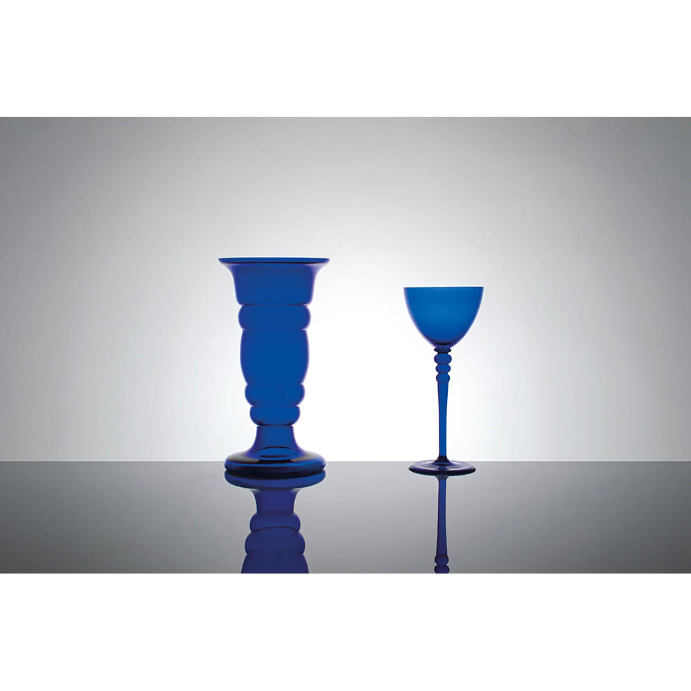 BAYERISCHER WALD, Lotto composto da vaso e calice in vetro blu cobalto.