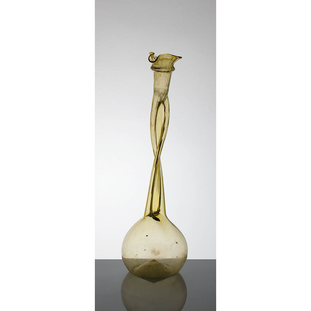 FACON DE VENISE - Vaso “kuttrolf” in vetro paglierino con collo oblungo ricurvo, fine XIX secolo.