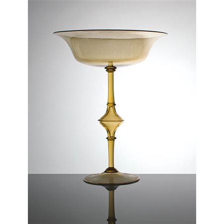 MURANO - Coppa in vetro pagliesco su stelo decorato, anni ‘30.