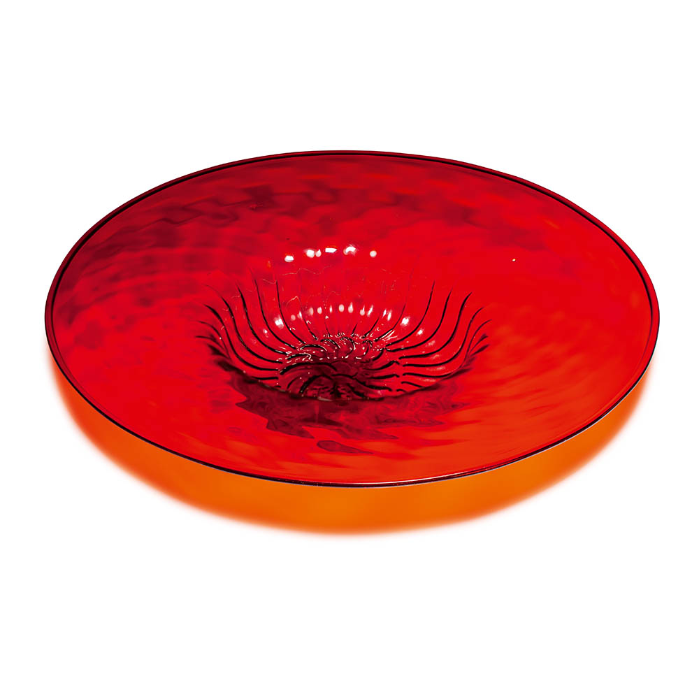 MURANO - Grande piatto in vetro rubino con costolature, anni ‘20.