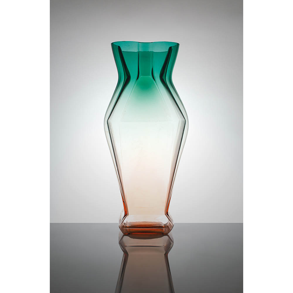 TONI ZUCCHERI, VEART - Grande vaso “Golia” in vetro trasparente degradante dal verde al pesca, fine anni ‘70.