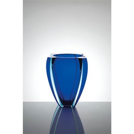 TINA AUFIER, VENINI - Vaso “Alboino” in vetro pesante nei toni del blu e dell’acquamare, 1996.
