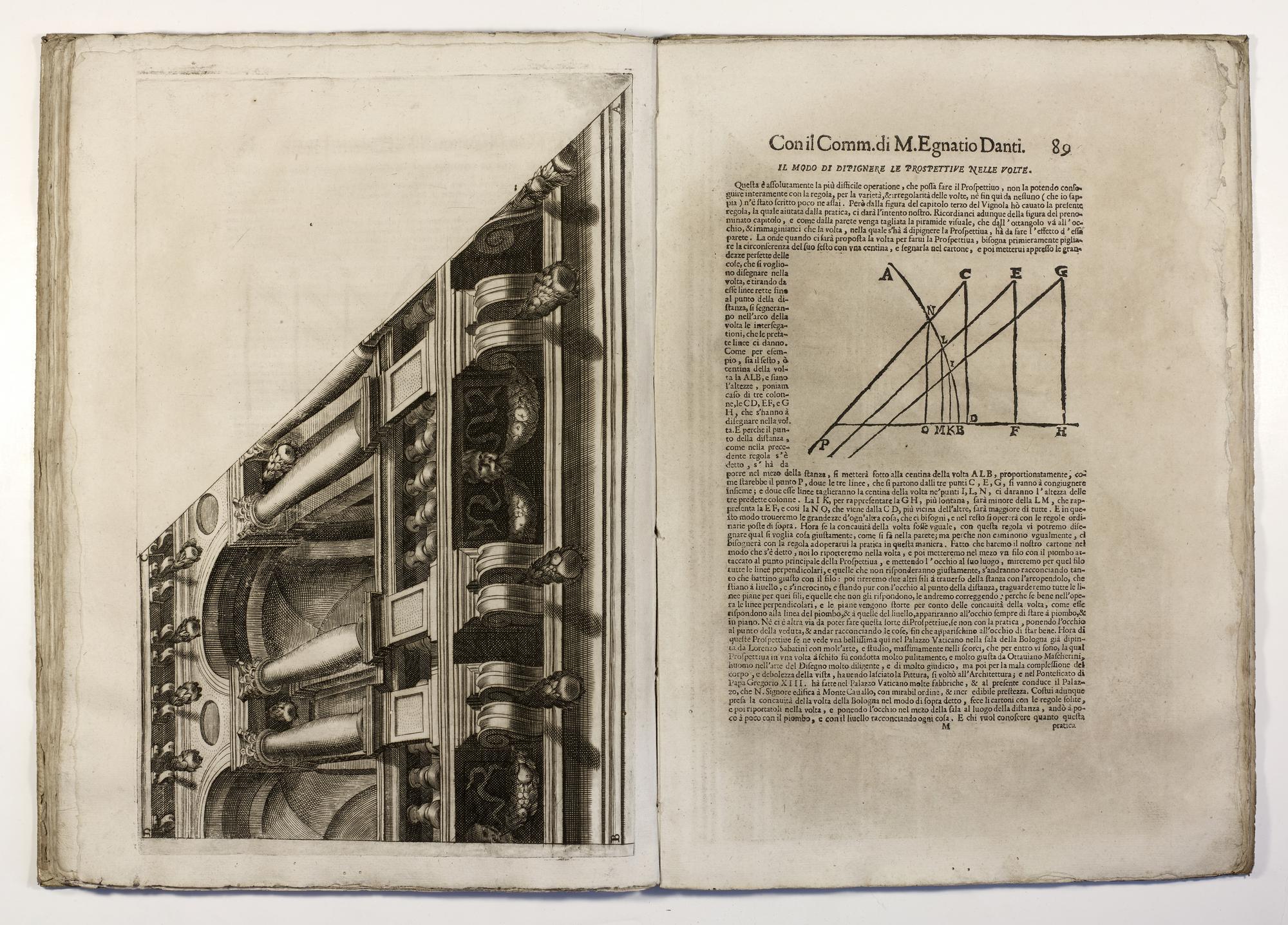 Edizione bolognese di questo trattato del Vignola con il commento di Egnazio Danti, edito per la prima volta nel 1583. Cfr. Brunet V, 1220 cita l'edizione originale; Riccardi I, 87-88; Fowler 389.