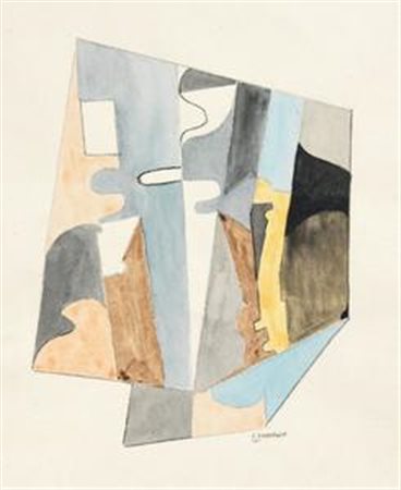Enrico Prampolini Modena 1894 - Roma 1956 Costruzione geometrica, 1920 Acquerello su carta, cm. 31,8x21 Firma e data in basso a destra: E. Prampolini / 920. Al verso, su un cartone di supporto: etichetta e timbro Gal- leria Fonte d'Abisso Edizioni, Modena-Milano: etichetta Bruno Tartaglia, Roma / Mostra Prampolini / Palazzo Esposizioni.