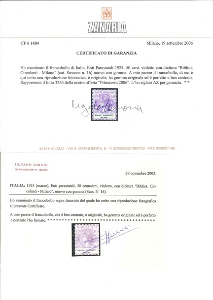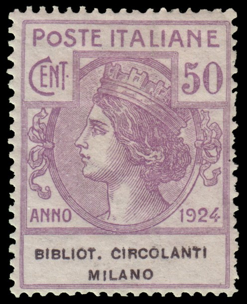 REGNO D'ITALIA 1924 Parastatali "Bibliot. Circolanti Milano". 50c. lilla scuro