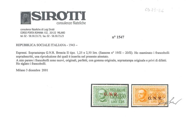 Espressi. Serie completa di 2 valori con soprastampa "G.N.R." del II tipo