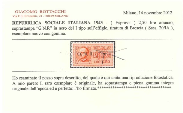 R.S.I. 1943 Tiratura di Brescia Espressi. 2,50 lire arancio con soprastampa "G.