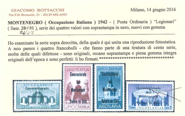 MONTENEGRO 1942 Occupazione italiana "Legionari". Serie completa di 4 valori co