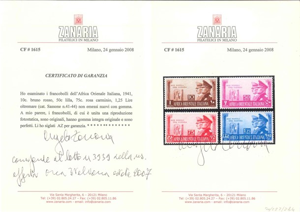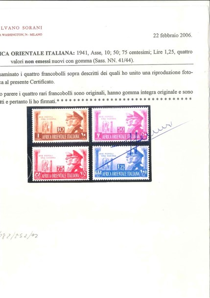 Lot 423 | AFRICA ORIENTALE ITALIANA 1941 "Fratellanza d'armi italo-tedesca". Serie comple