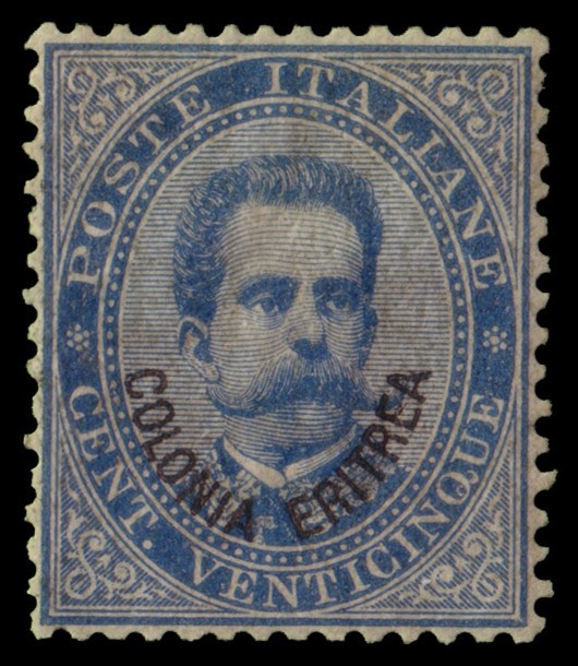 25c. azzurro soprastampato "COLONIA ERITREA" in semicerchio