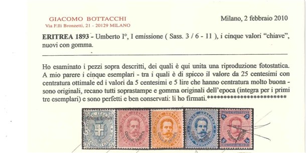 Cert. G. Bottacchi. Firma A. Diena, G. Oliva