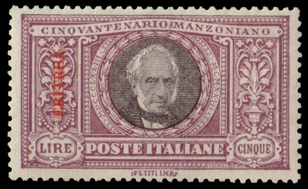 ERITREA 1924 "Alessandro Manzoni". 5 lire violetto e nero Ottima centratura. P