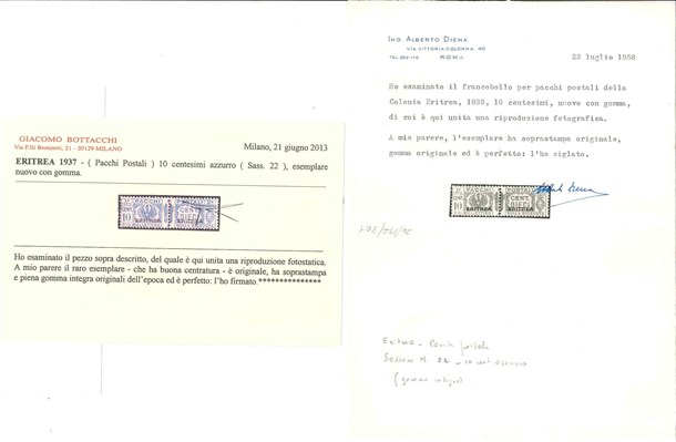 ERITREA 1937 Pacchi postali "Fascio". 10c. azzurro Provenienza Collezione "Nim