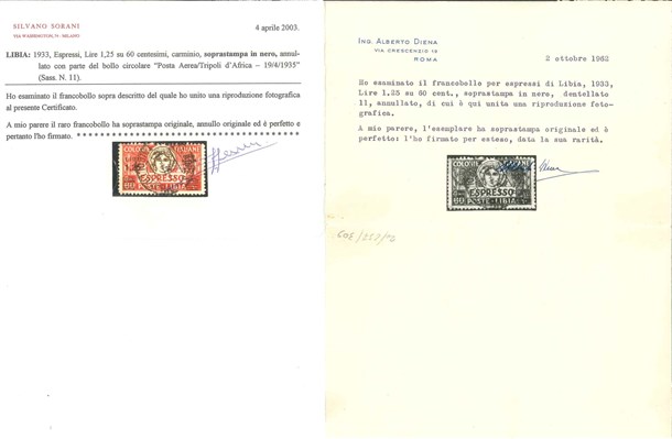 LIBIA 1933 Espressi. 1,25 lire/60c. carminio e bruno, soprastampa nera Proveni