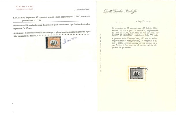 Cert. G. Bolaffi, S. Sorani. Firma Em. Diena, A. Diena