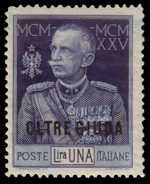 OLTRE GIUBA 1925 "Giubileo del Re". 1 lira azzurro D.13½ Provenienza Collezion