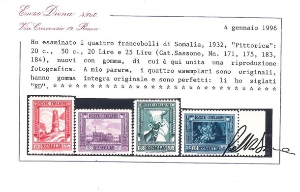 Lot 452 | SOMALIA 1932 "Pittorica". 4 alti valori della serie D.12 Provenienza Collezion