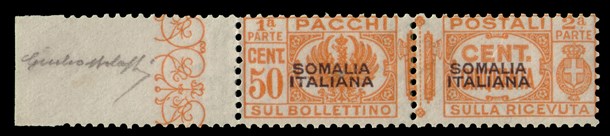 SOMALIA 1940 Pacchi postali "Fascio". 50c. arancio, bordo di foglio Provenienz